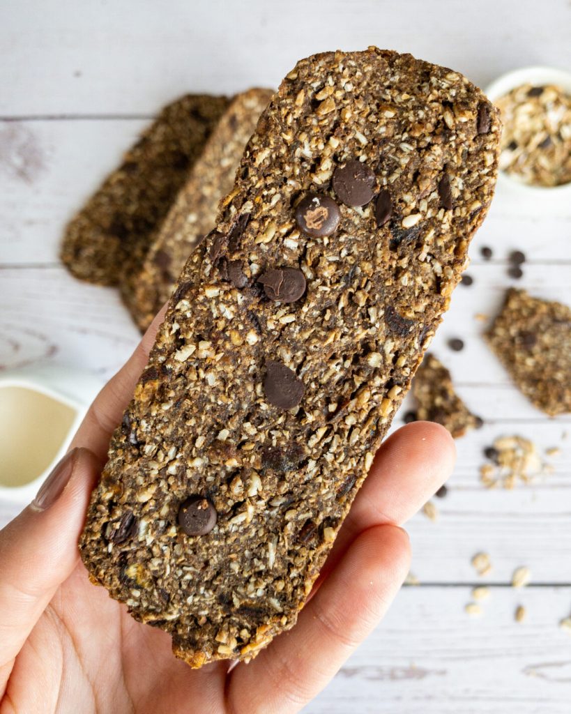 Apoi, trecem printr-un maruntitor mixul de fulgi si fructele uscate. Din mixul de fulgi, pastram 10g nemaruntite