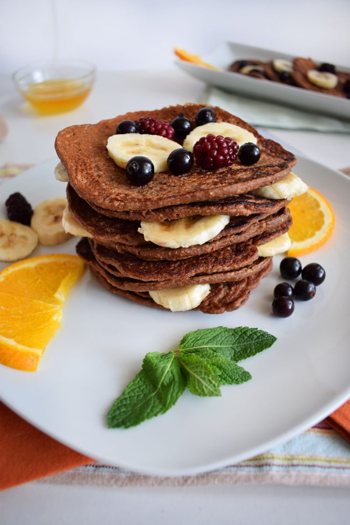 La final adaugă peste clătite afinele proaspete și untul de arahide